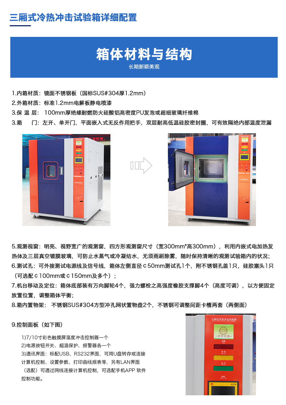 產(chǎn)品型號:JQTS3-408 品牌:劍 喬 用途:三箱式冷熱沖擊試驗箱又名溫度沖擊試驗或高低溫沖擊試驗是用于考核產(chǎn)品對周圍環(huán)境溫度急劇變化的適應(yīng)性,裝備設(shè)計定型的鑒定試驗和批產(chǎn)階段的例行試驗中不可缺少的試驗,在有咨詢熱線:13829135130