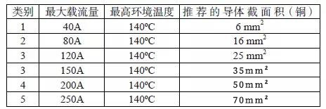 2.2.1 最大電流承載能力:該測試是為了確定線束在開始發(fā)生過度熱降解和/或具有超額電阻之前能夠承受的最大試驗電流。實驗的合格標志是在規(guī)定的載流范圍內(nèi),整個連接系統(tǒng)內(nèi)任何一點的溫升不可超過55度或不可超出產(chǎn)品的使用極限。目前不同規(guī)格線束將依據(jù)線纜截面積進行載流劃分,具體可參看下表2: