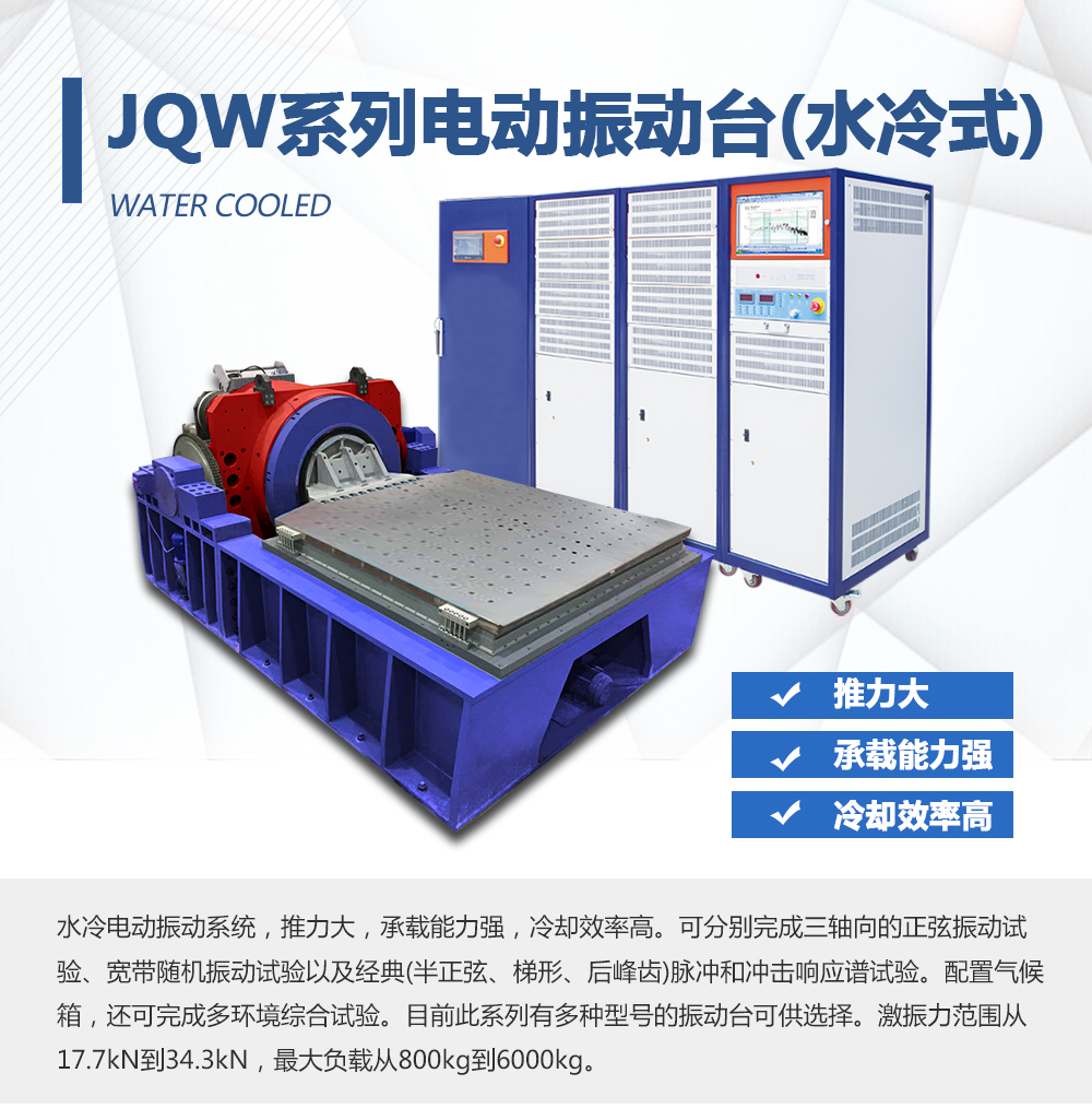 產品型號:JQW-502-450 品牌:劍 喬 用途:水冷臺電動試驗系統,推力大,承載能力強,冷卻效率高。可分別完成三軸向的正弦振動試驗、寬帶隨機振動試驗以及經典(半正弦、梯形、后峰齒)脈沖和沖擊響應譜試驗。咨詢熱線:13829135130