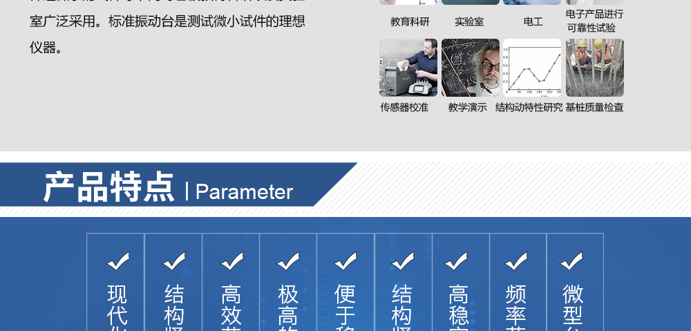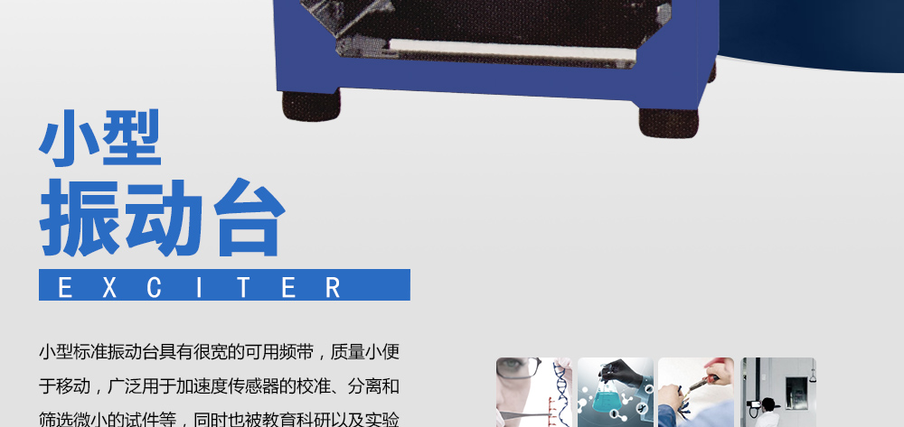 用途:小型標(biāo)準(zhǔn)振動臺具有很寬的可用頻帶,質(zhì)量小便于移動,廣泛用于加速度傳感器的校準(zhǔn)、分離和篩選微小的試件等,同時也被教育科研以及實驗室廣泛采用。